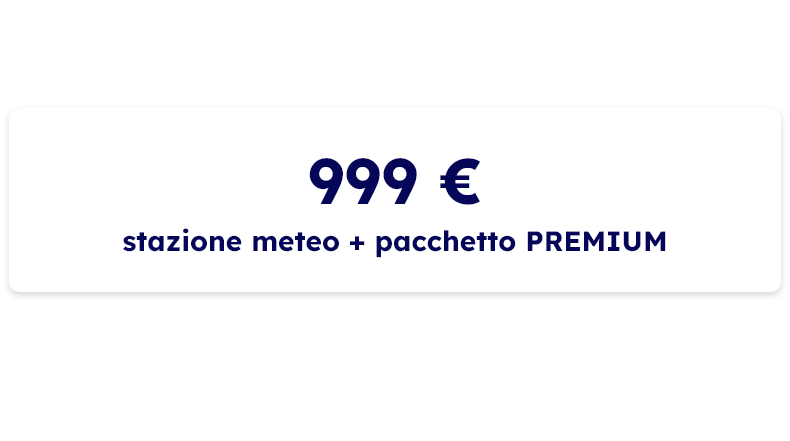 La stazione meteo, abbinata al nostro pacchetto PREMIUM, ti garantisce un controllo da remoto preciso ed in tempo reale delle tue colture.